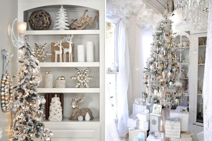 Если вы выбрали этот стиль для новогоднего оформления, тогда забудьте про разноцветную мишуру и банты всех цветов. Пусть доминирующим цветом станет белый. Игрушки могут быть из пряжи, дерева или других природных материалов. Деревянные подставки, подсвечники в серебре и стильные однотонные вазы. Можно также добавить к украшению композиции из сухих веток. На скандинавский стиль укажут также фигурки оленей и вышивка на диванных подушках или скатерти.