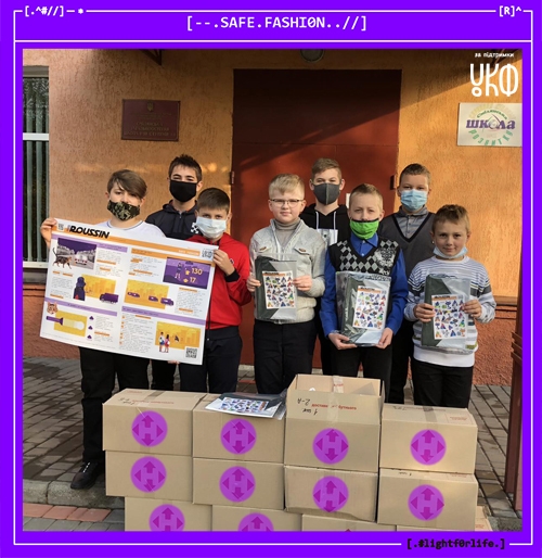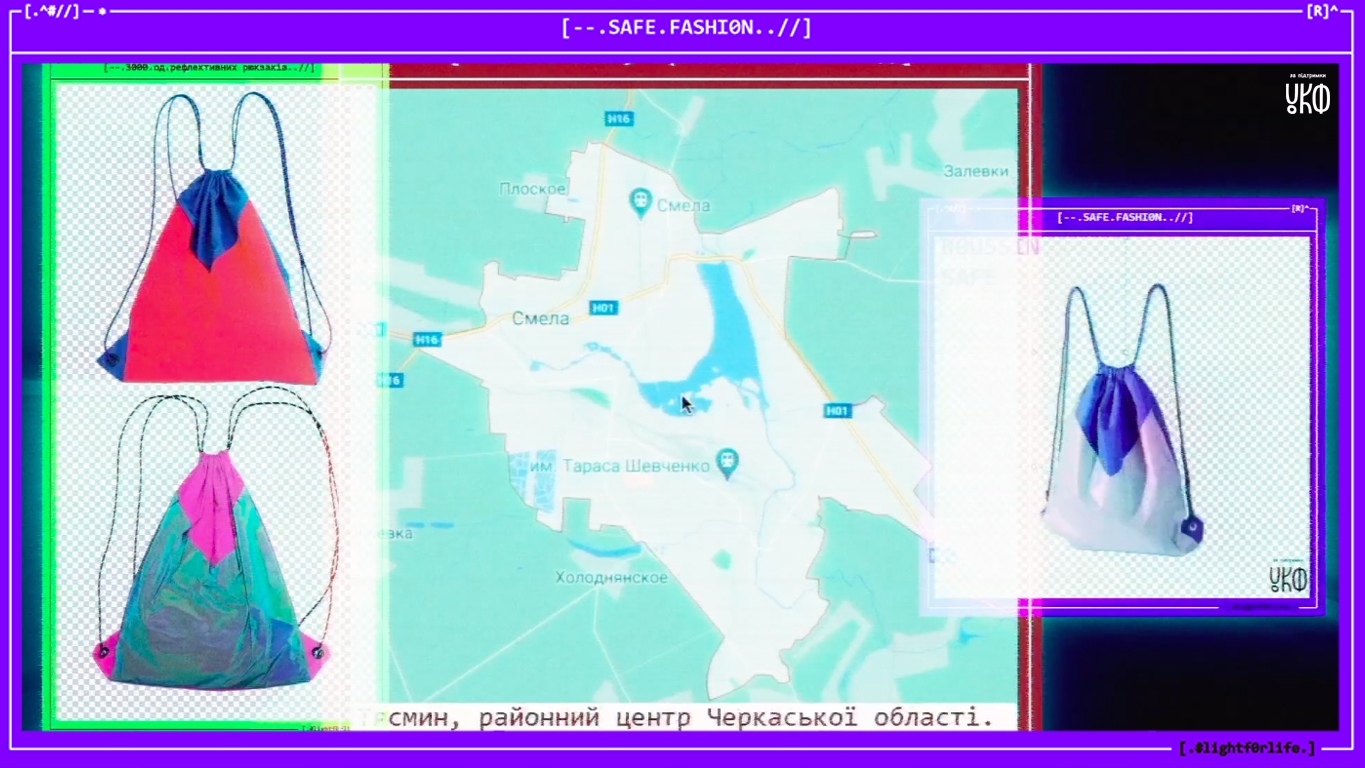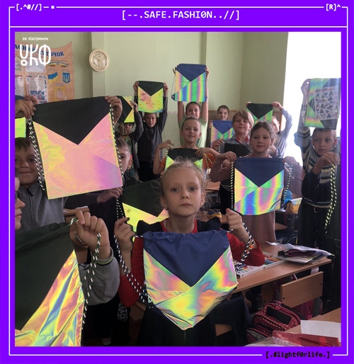 В рамках проекта SAFE FASHION — #безсекундижиття, который реализуется при поддержке Украинского Культурного Фонда, команда бренда создала 3000 дизайнерских рюкзаков со светоотражающими элементами для детей младшего школьного возраста города Смелы. Такое решение является ответом на потребность обезопасить молодое поколение от рисков на дорогах в темное время суток. Ведь в таком случае видимость пешехода в рефлективной одежде водителем увеличивается до 130 метров вместо привычных 17.