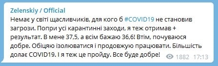 К сожалению, у Президента Украины Владимира Зеленского положительный тест на COVID-19. Глава государства чувствует себя хорошо и будет продолжать выполнять свои обязанности в дистанционном режиме на самоизоляции.