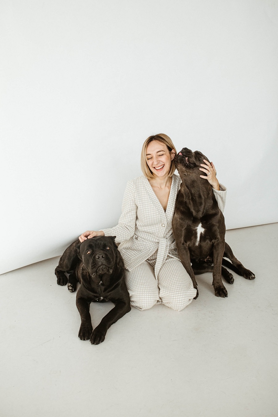 Дмитрий Дир, Лена Мандзюк и основатели бренда One by One Саша и Лида Сметана рассказали свои истории, чтобы привлечь внимание к теме бездомных животных и развеять страхи, связанные с их адопцией. Запечатлела героев с их питомцами фотограф Марина Карпий.