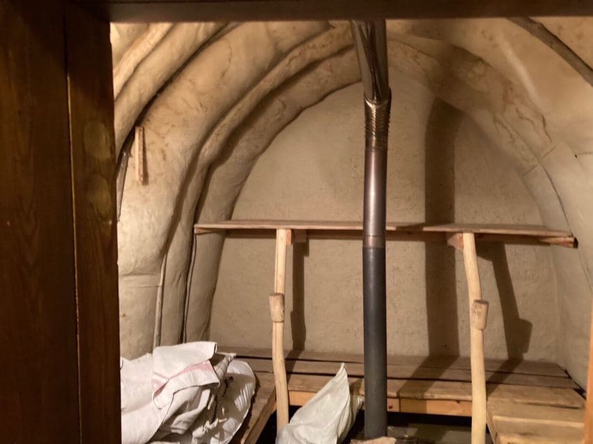 Саман во влажном виде представляет собою пластичную массу, а в сухом — крепкий и прочный блок. Подобные блоки высушивают на солнце, а уже потом возводят из них дома или другие постройки. Саманные дома долговечны, если правильно построены, хорошо удерживают тепло, обладают высокой шумоизоляцией. Глиняные стены поддерживают оптимальную влажность воздуха в доме, огнеупорны, и позволяют сделать дом любой формы. Так что, фактически, все строения на территории усадьбы, традиционные хаты-мазанки, но в современном дизайне, необычной формы, со всеми удобствами, бытовой техникой и мебелью. Здесь вы можете видеть несколько вариантов саманных домов. Вот этот, например, встроен одной из стен в холм. Этот дом построен по принципу лисьей норы, в нем прохладно летом, и теплее зимой. Однако пришлось сделать очень хорошую гидроизоляцию, дабы вода со склонов не подтапливала строение. Сам интерьер и все пространство усадьбы — это живое творение ручной работы выполнено просто, из природных материалов: в основном из дерева и глины. Декор был выполнен с помощью камыша, который мы собрали на речке Россь. Камыш помог нам, и задекорировать стену, а также помог с шумоизоляцией крыш.