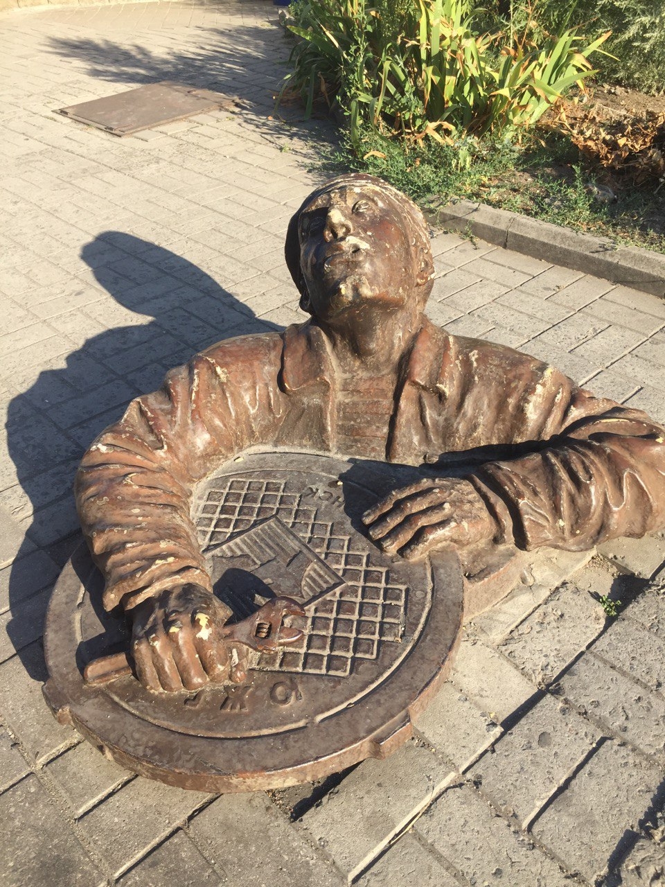 Неподалеку расположен еще один памятник, который нельзя обойти вниманием, а посвящен он сантехнику.