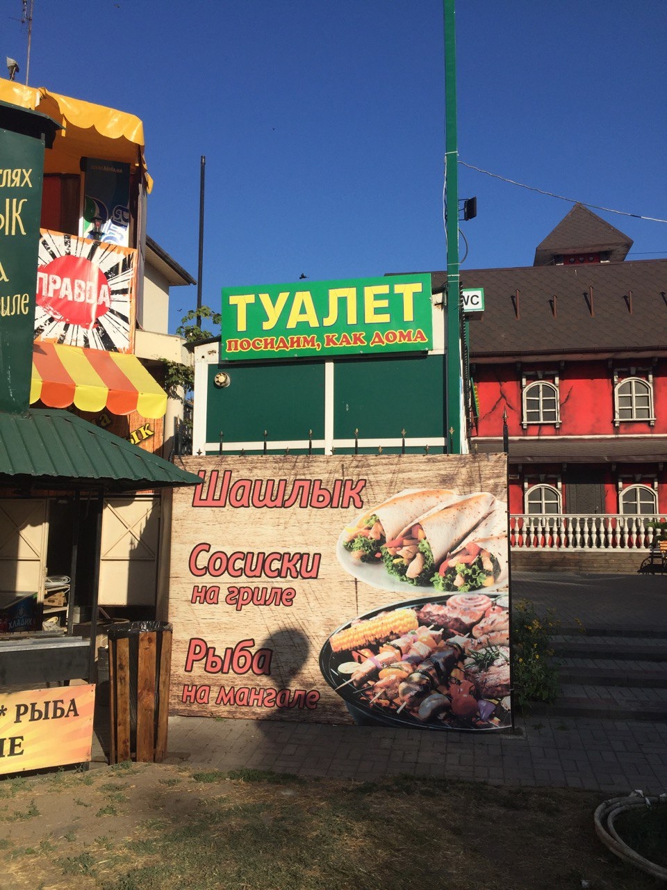 Интересный факт. Чего не отнять у жителей Бердянска, так это чувства юмора. Оцените вывеску туалета в центре города. Мелочь — а настроение поднимает.
