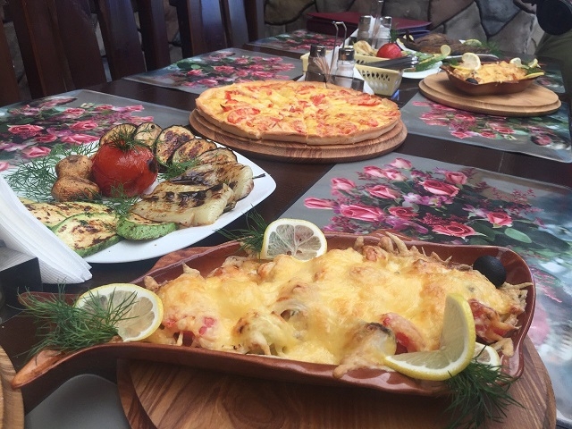 Что касается блюд, то в "Волне" готовят фирменные чебуреки, пиццу (кстати, тесто в ней особенное, никогда раньше такого не пробовала), много различных салатов и блюд из морепродуктов.