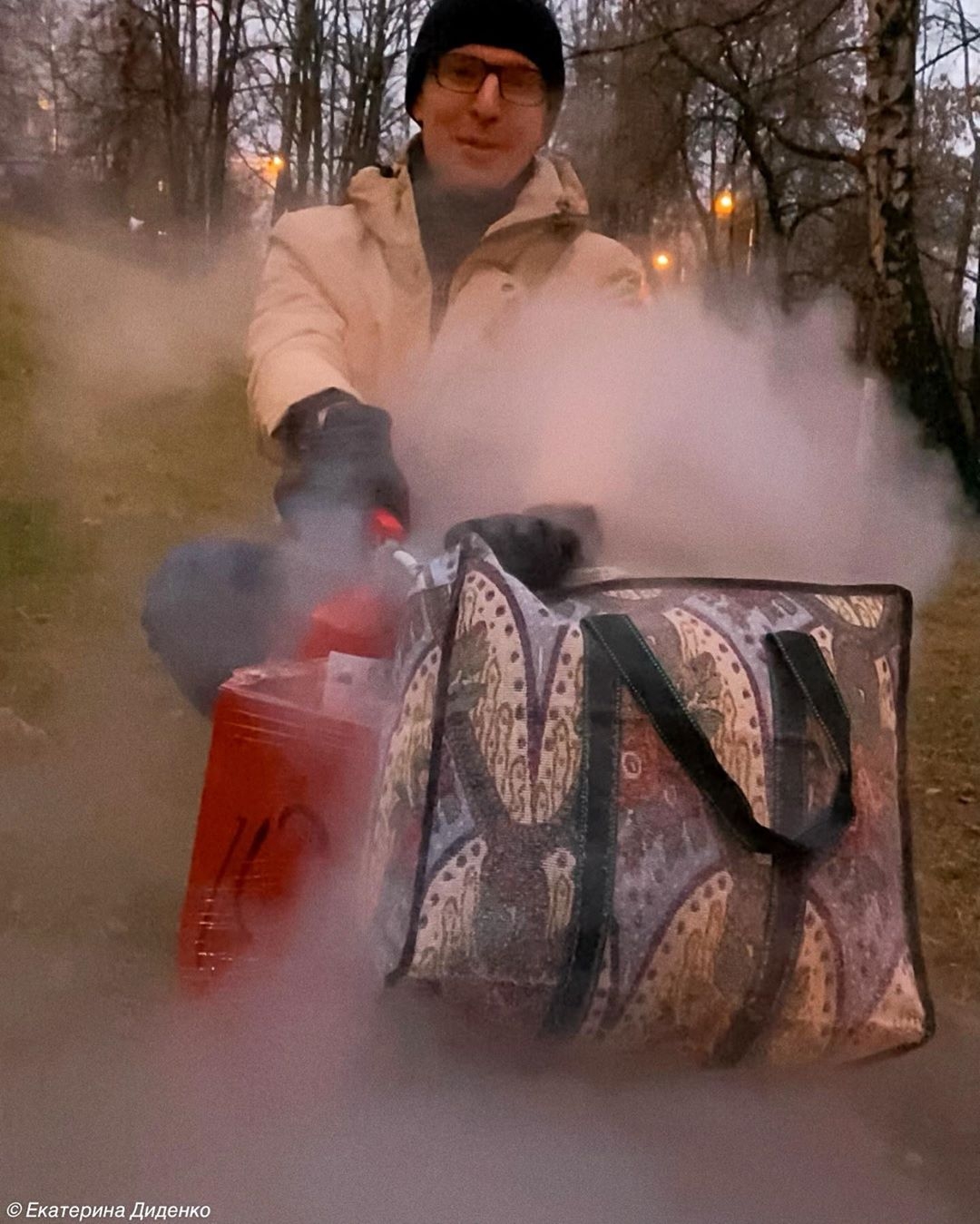 Он мне не говорил, что там будет. "Это сюрприз"... Когда начали засыпать сухой лед, я думала, что его насыпят и на этом все кончится. Я не думала, что туда будут прыгать люди. Думала, красивый дым, все порадуются и пойдут веселиться дальше.