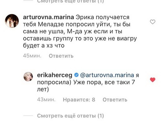 При этом Герцег подчеркнула, что продюсер коллектива полностью поддержал ее решение. Эту же мысль она подтвердила в ответах на вопросы фолловеров в комментариях: