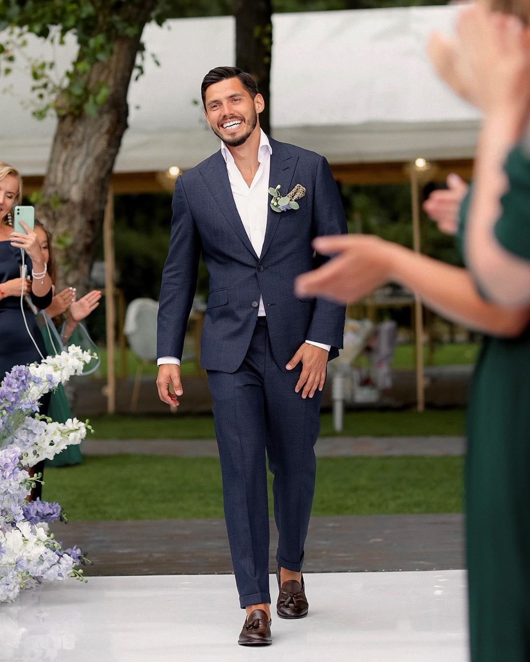 И вот во время роскошной свадьбы Никита Добрынин сделал подарок своей невесте — выполнил авторскую песню об их истории любви. Видео с выступлением жениха опубликовала певица и телеведущая Ольга Цибульская в сторис на своей Инстаграм-странице.
