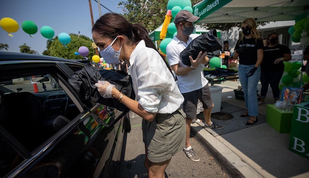 Baby2Baby с гордостью провела раздачу в школе Knox Elementary в Южном Лос-Анджелесе, поскольку на этой неделе ученики по всей стране возвращаются к дистанционному обучению. Спасибо герцогу и герцогине Сассекским за то, что они присоединились к нашей команде и помогли нам раздавать школьные принадлежности, одежду, предметы гигиены, продукты питания и многое другое детям, которым эти предметы первой необходимости нужны больше, чем когда-либо, в этот беспрецедентный школьный сезон,