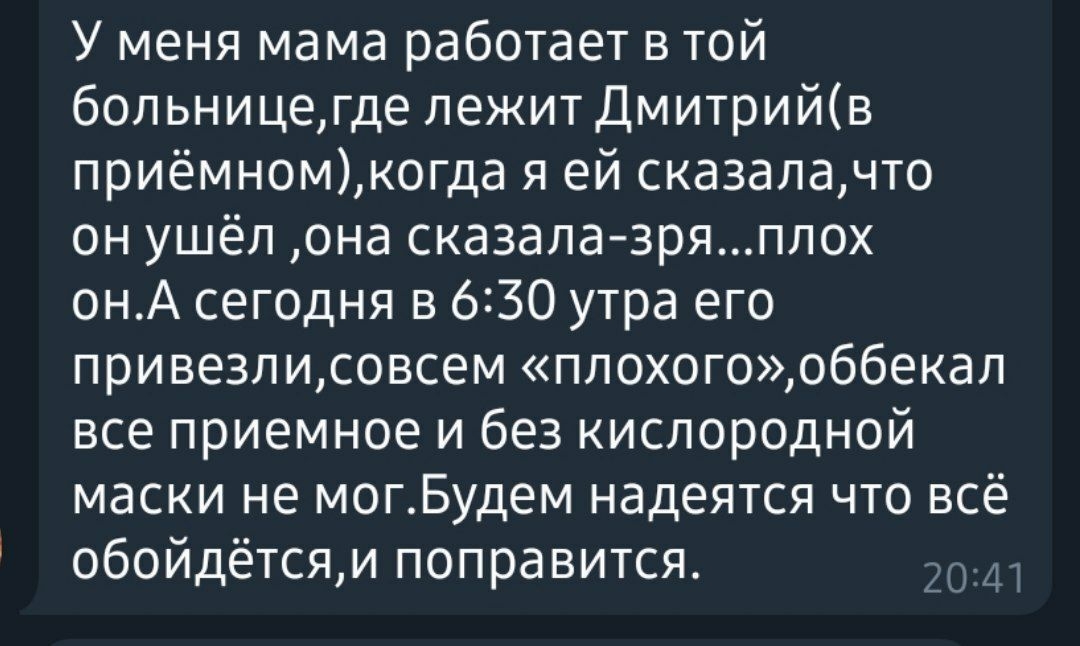 К сожалению, уже ничего не изменишь. Выражаем искренние соболезнования родным и близким покойного Дмитрия...