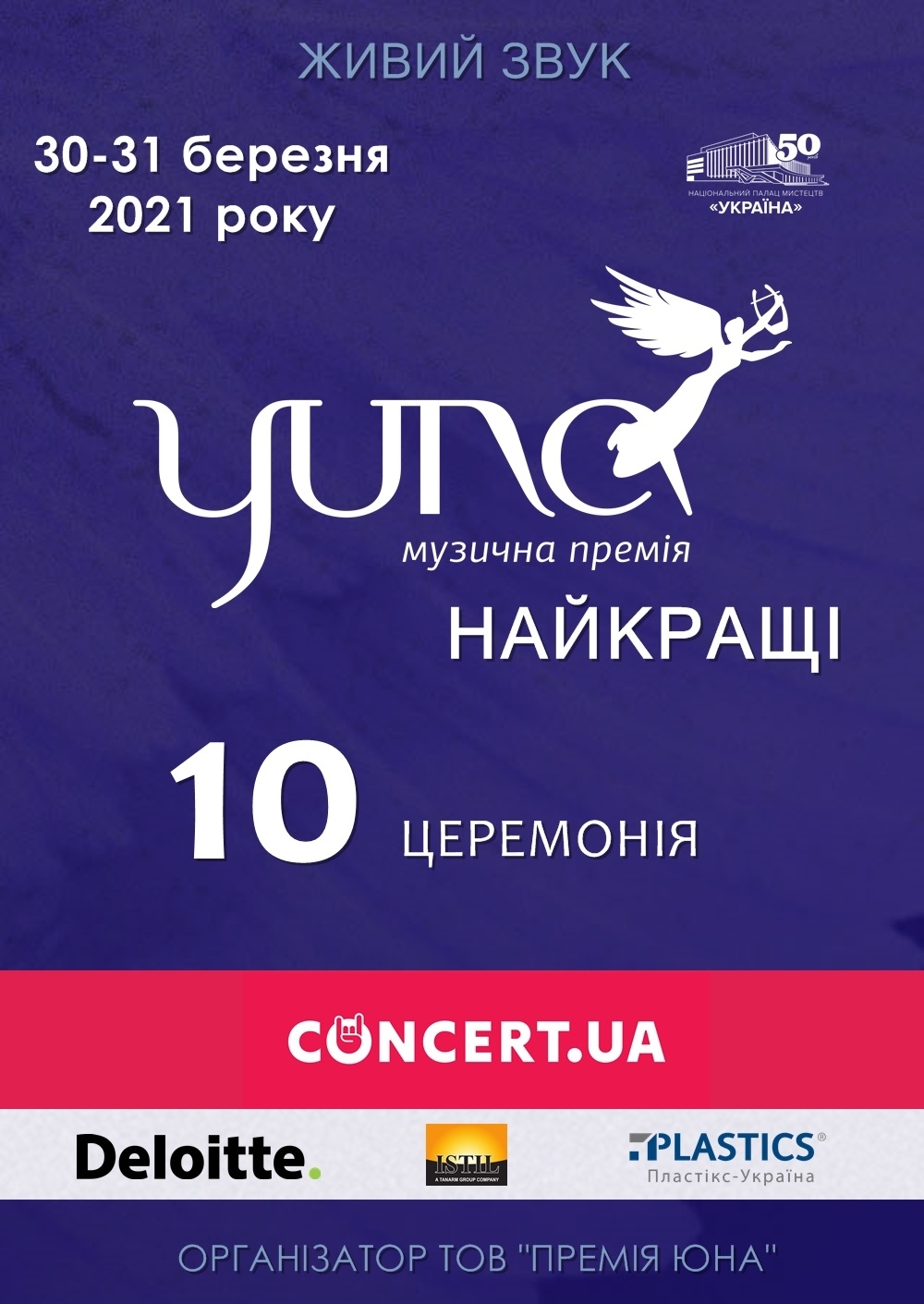Нагадаємо, десята, ювілейна церемонія нагородження Національною музичною премією YUNA 2021 відбудеться 30-31 березня 2021 року у київському Палаці "Україна". Захід відбудеться з дотриманням всіх норм безпеки, які будуть обов’язковими на час проведення церемонії.
