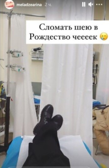 18-летняя Арина Меладзе опубликовала у себя в Instagram-stories снимок с больницы. После этого она сообщила, что сломала шею, однако по каким-то причинам удалила эту сториз.