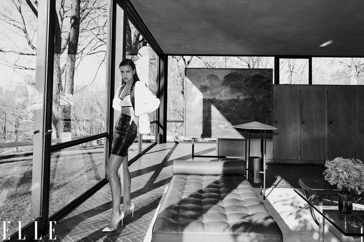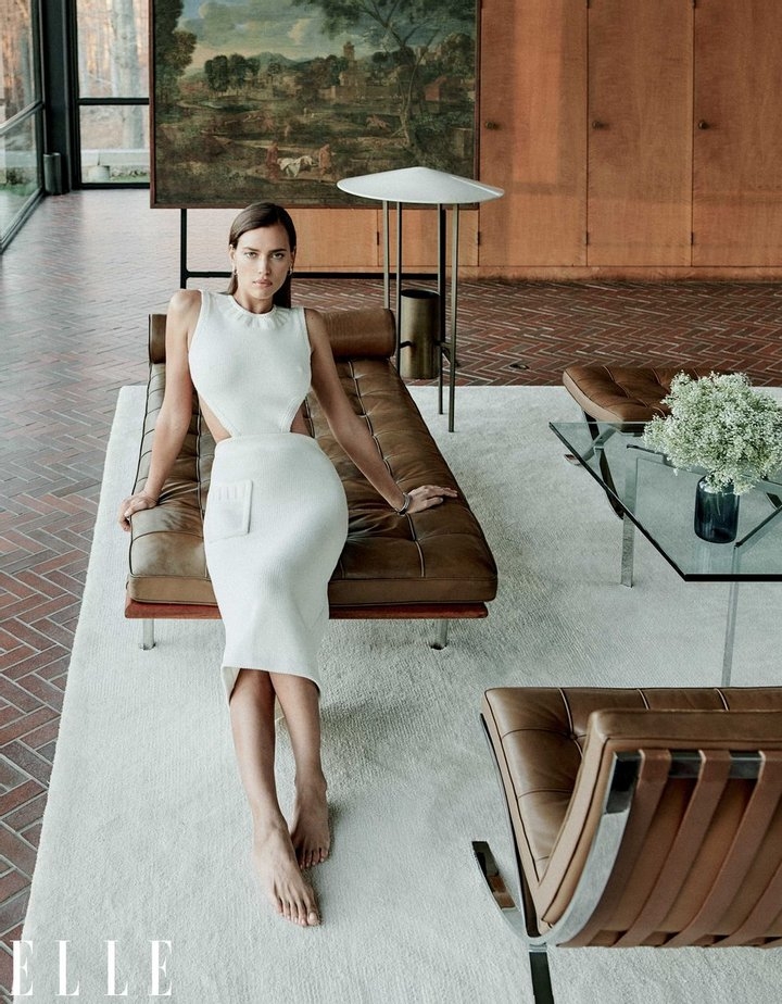 Для глянца Ирина Шейк снялась в стильных и эффектных образах от Hermes, Dolce & Gabbana и Burberry. Модель примеряла молочный брючный костюм вместе с бра, кожаные брюки в паре с майкой-алкоголичкой, мини-юбки с кроп-топами и платья с асимметричными вырезами.