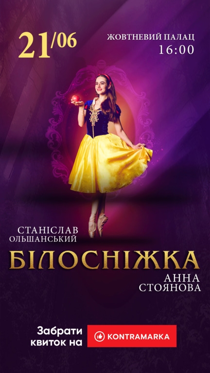 А в 16:00 зарядиться позитивными эмоциями можно будет на спектакле "Белоснежка и семь гномов". Партию принца танцует премьер балета Национальной оперы Украины Станислав Ольшанский в паре с младшей сестрой супруга Кухар, нежнейшей Анной Стояновой, которая в этой партии очаровала требовательных французов.