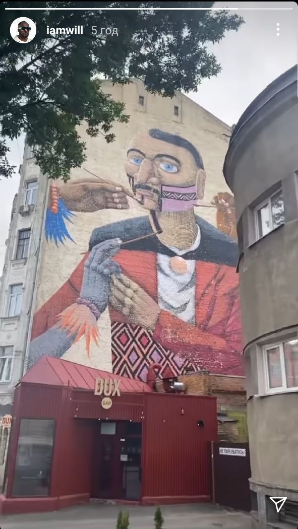 Уильяму Адамсу так понравилась настенная роспись киевского здания, что он решил поделиться ею у себя в Instagram-stories.