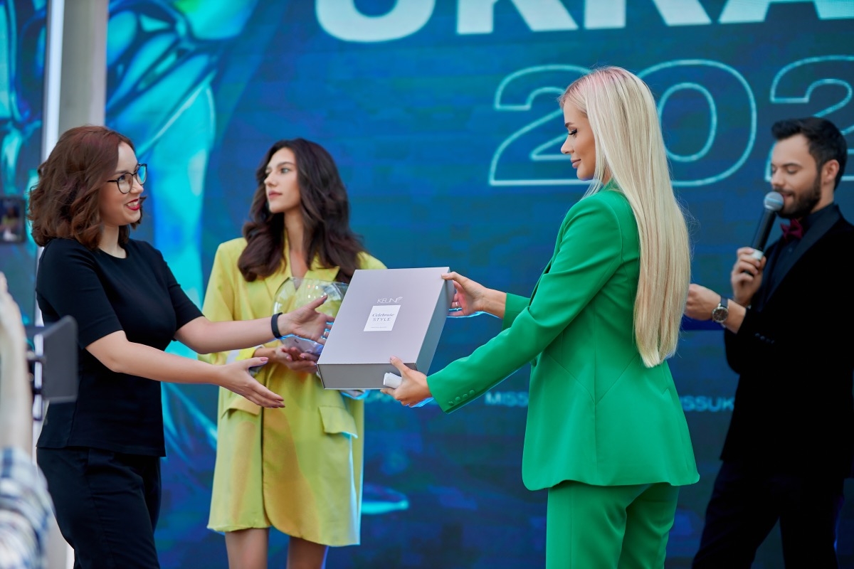 Перед выходом финалисток гостей презентации ожидали приятные сюрпризы от партнеров конкурса "Мисс Украина": ресторанного холдинга Bulldozer Group Ukraine, профессиональной косметики для волос Keune Haircosmetics, международного beauty-бренда Kodi professional, украинского бренда женского белья JASMINE, натуральной французской косметики L`Occitane, а также постоянного партнера — школы макияжа Ирины Хомяковой.