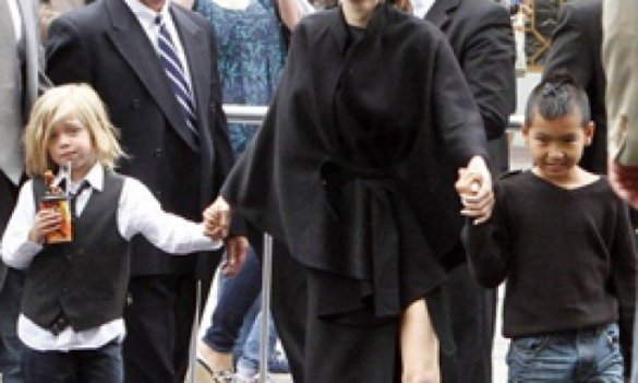 Бред Питт вел за руку приемных детей Пакса и Захару, а Анджелина – приемного Мэддокса и родную дочь Шайло, которую кстати, до сих пор продолжают одевать как мальчика.