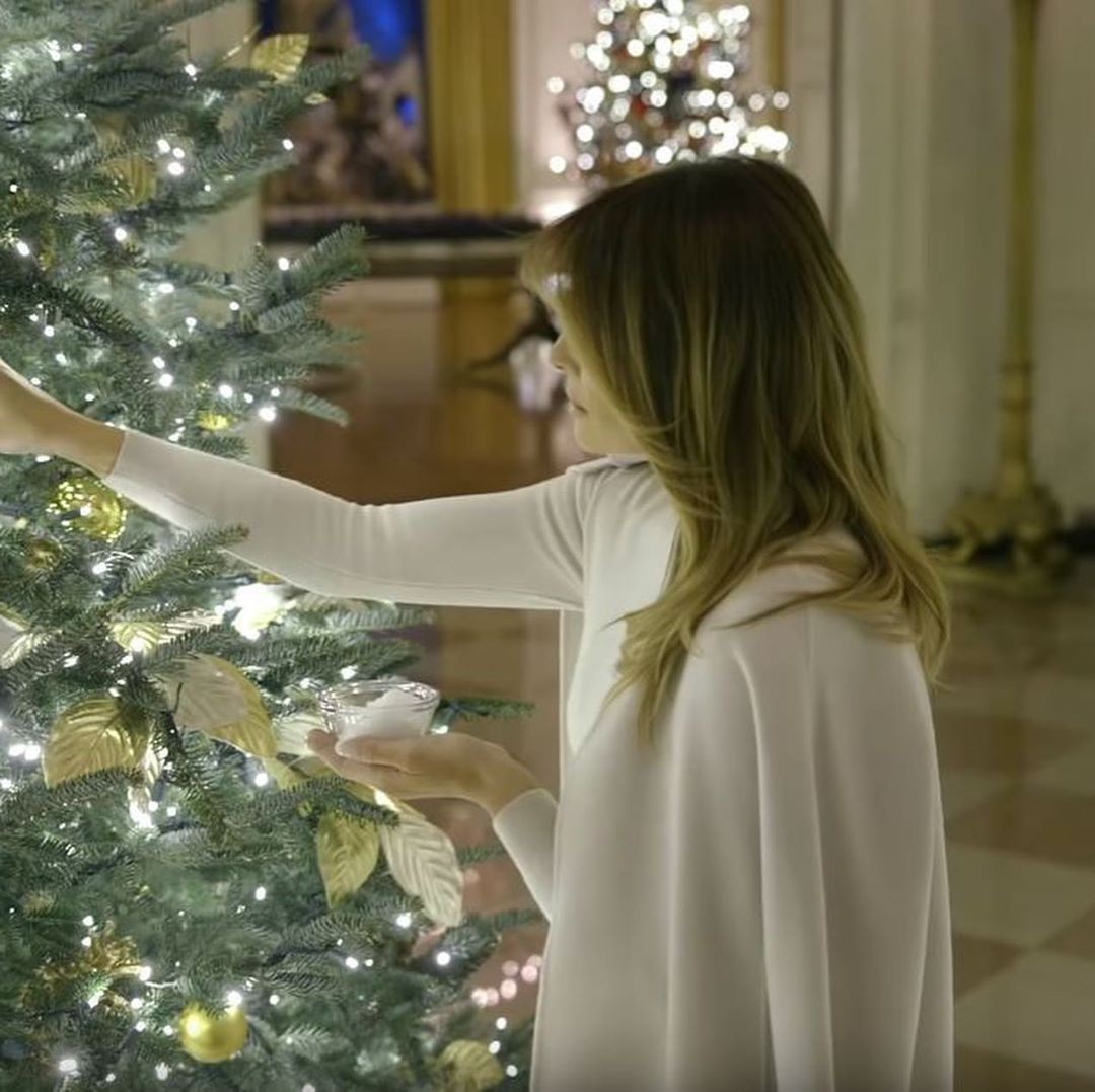 И если в прошлом году Меланию Трамп критиковали за выбор кроваво-красных елок в духе сериала "Рассказ служанки", то в этот раз жена Дональда Трампа сделала ставку на класссику.