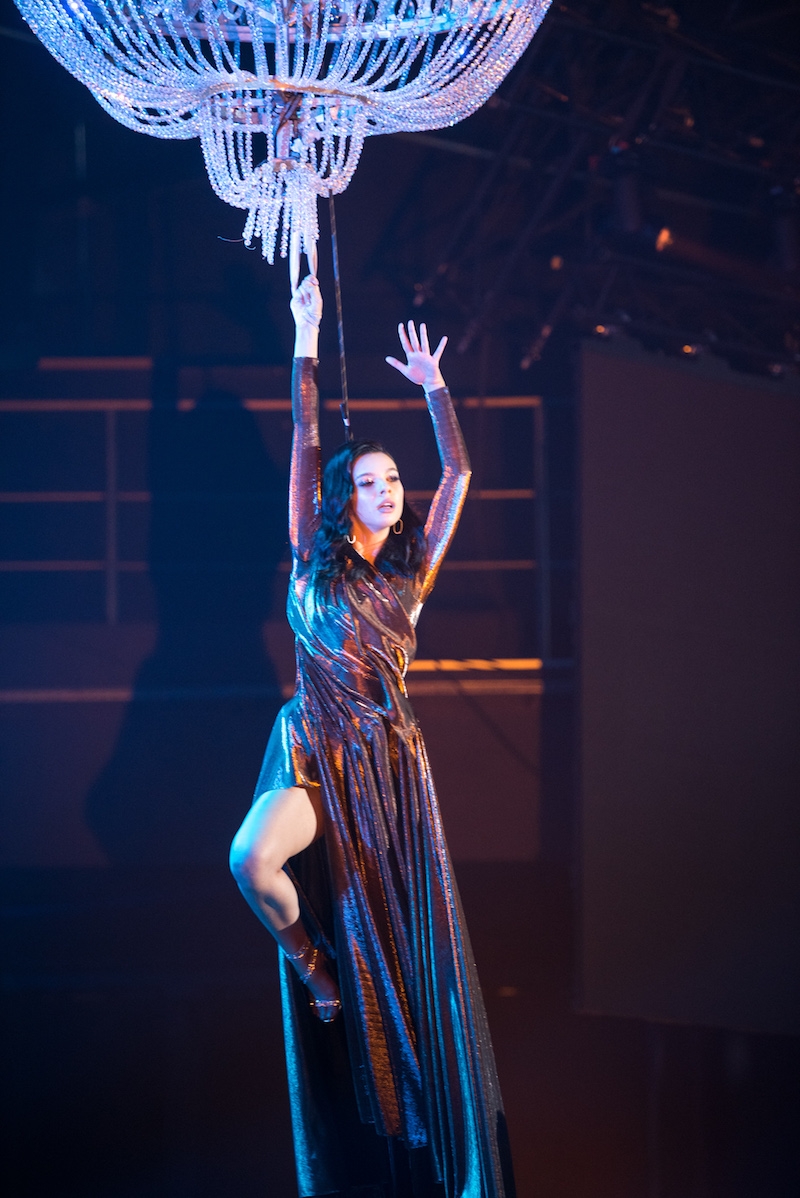 Саша Литвин и вовсе чуть не получила серьезную травму — модель слишком туго намотала на руку петлю, прикрепленную к люстре (держась за петлю, девушки поднимались в воздух). В какой-то момент ткань так сильно затянулась вокруг запястья девушки, что ей стало больно!