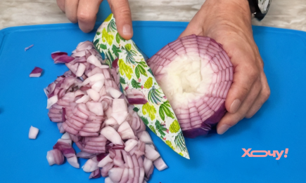 Кулинарные подсказки 24 июня 16:00 Как нарезать огромную луковицу в считанные секунды: крутой кулинарный трюк