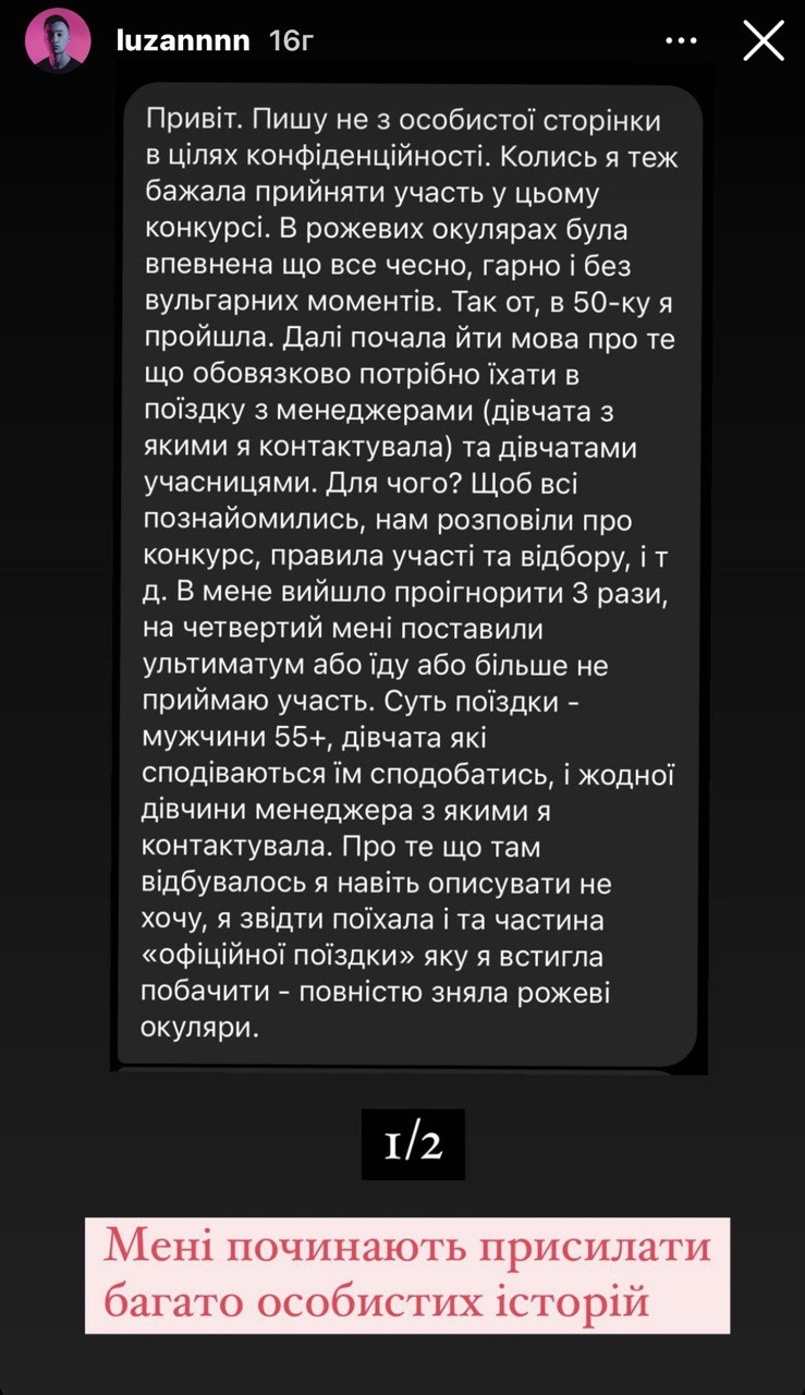 До речі, одна з передплатниць Андрія розповіла, що не всі з них роблять це за своєю ініціативою. Багатьох із них організатори запрошують на закритий захід із чоловіками, де дівчата знаходять собі спонсорів, а якщо моделі відмовляються - їх дискваліфікують із конкурсу.