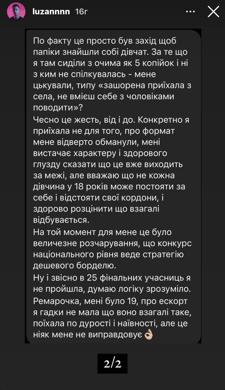 Однак що далі заходило подібне розслідування, то більше шокуючої інформації "спливало". Крім того, що оргкомітет конкурсу повністю проігнорував зв'язок багатьох учасниць з Росією, багато хто з них займався ескортом.